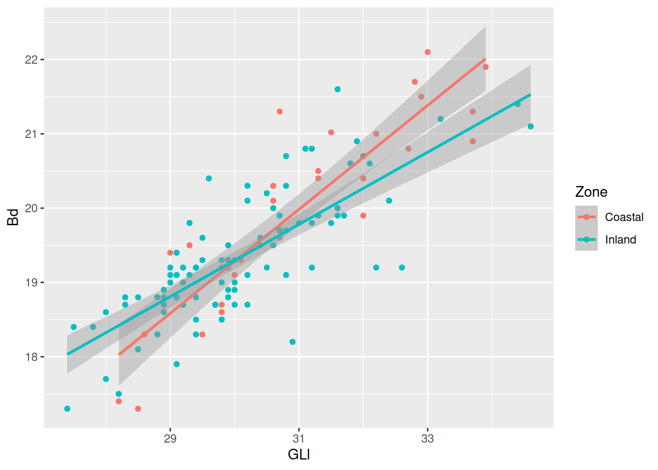 mapping = aes(x = GLl, y = Bd, colour = Zone)