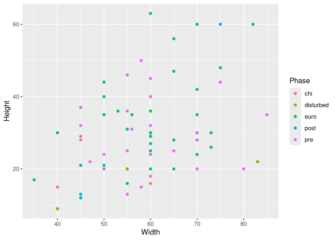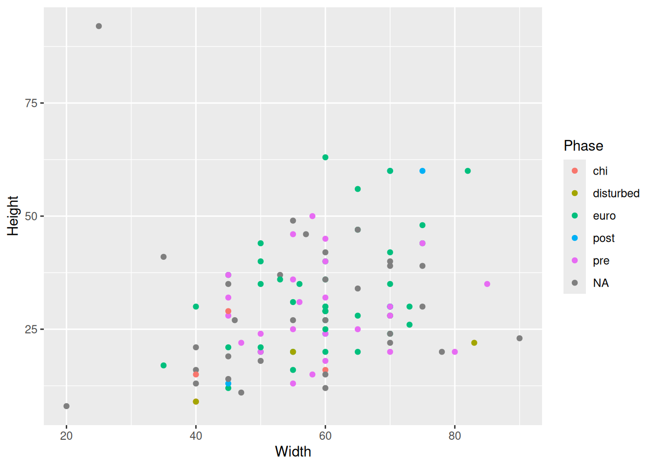 raw_data ggplot(aes(x = Width, y = Height, col = Phase)) +